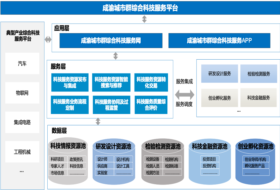 科技服务线上平台以突出浏览量、撮合交易量为设计出发点,着重从平台的提档升级、资源的整合突破、平台的特色凝练和维护更新等多个方面开展研发工作。目前平台的主要服务功能已经基本开发完成,主要包括“科技服务资源快速发布与集成管理、科技服务智能搜索与推荐、科技服务资源转化交易、科技服务业务流程定制、科技服务协同与过程管控、科技服务资源质量综合评价”等6个功能系统。初步实现科技淘宝、科技总包分包、科技众包、科技服务激励、基于大数据的科技金融等5类综合科技服务模式的线上线下联通。并在重庆高新区、壁山高新区、四川泸州高新区等成渝多个高新区得到验证和应用推广。
