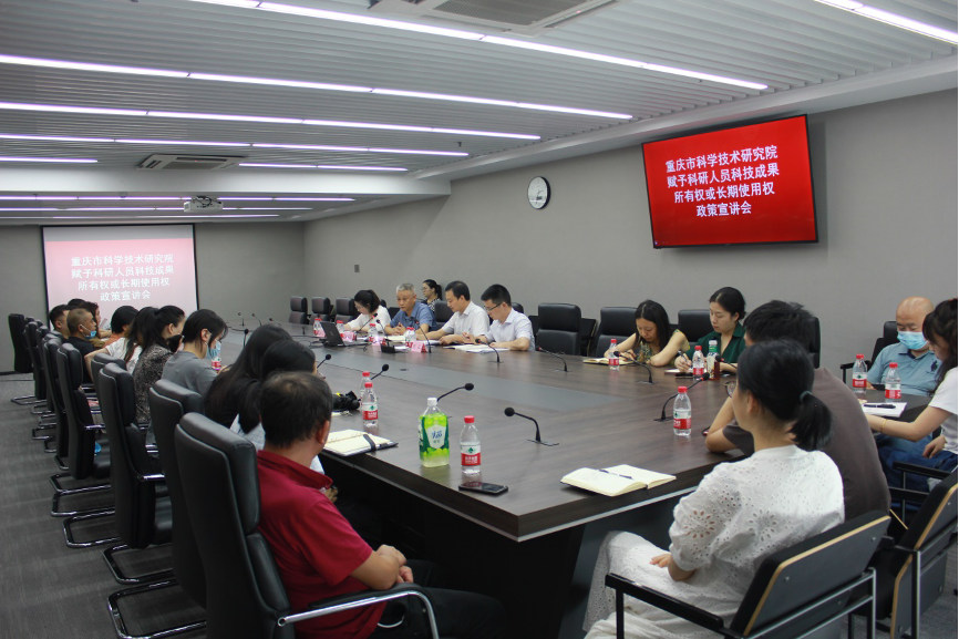 在重科智谷C座1203会议室举办“赋予科研人员职务科技成果所有权或长期使用权”政策宣讲会,邀请到市科技局成果处负责人岑军波、重庆理工大学产学研办公室技术服务中心负责人秦玲作政策解读和案例宣讲,院属各部门(单位)科技成果管理员、一线科研人员代表20余人参会。