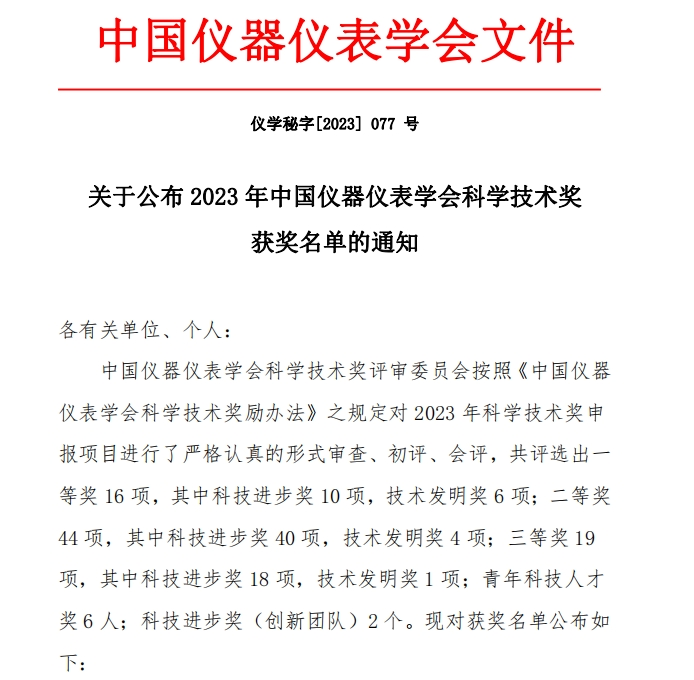 近日,中国仪器仪表学会公布“2023年中国仪器仪表学会科学技术奖获奖名单”,优博
