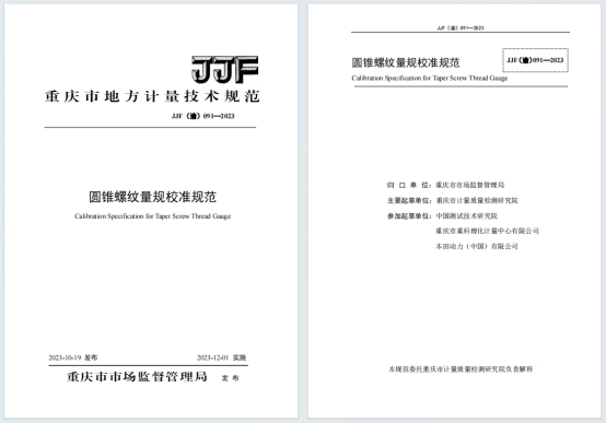 近日,参与起草的JJF(渝)091-2023《圆锥螺纹量规校准规范》、JJF(川)199-2023《光学样板校准规范》、JJF(渝)095-2024《表面温度源校准规范》等地方规范陆续发布。其中《圆锥螺纹量规校准规范》为川渝地区提供了统一且科学可行的评价方法,以保证圆锥螺纹制造的工艺水平、测量精度,从而提高汽车、摩托车等各类机械的总成质量;《光学样板校准规范》的实施解决了以采用光学样板作为计量标准器的溯源问题,也可以为光学元件加工企业统一光学样板量值提供技术保障;《表面温度源校准规范》的实施为重庆地区各行业广泛使用的表面温度源校准提供了技术指南。
