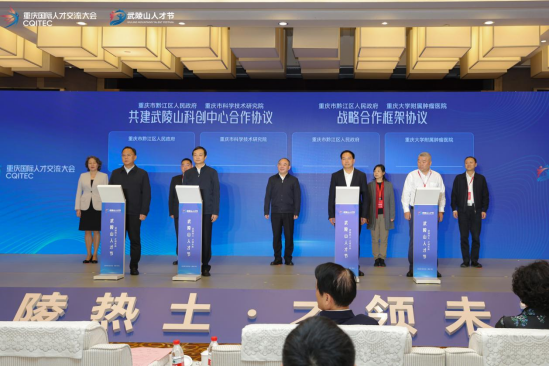 书记雷虹、重庆市科技局二级巡视员冯光鑫、黔江区委副书记、区长骆高燕等领导共同见证签约。武陵山科创中心与多家科研院所及企业签订了产学研合作协议。中国工程院院士、明月湖实验室主任潘复生与优博